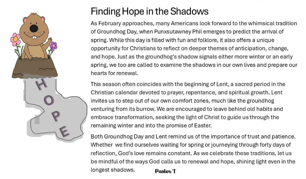 Pastor’s Monthly Message
